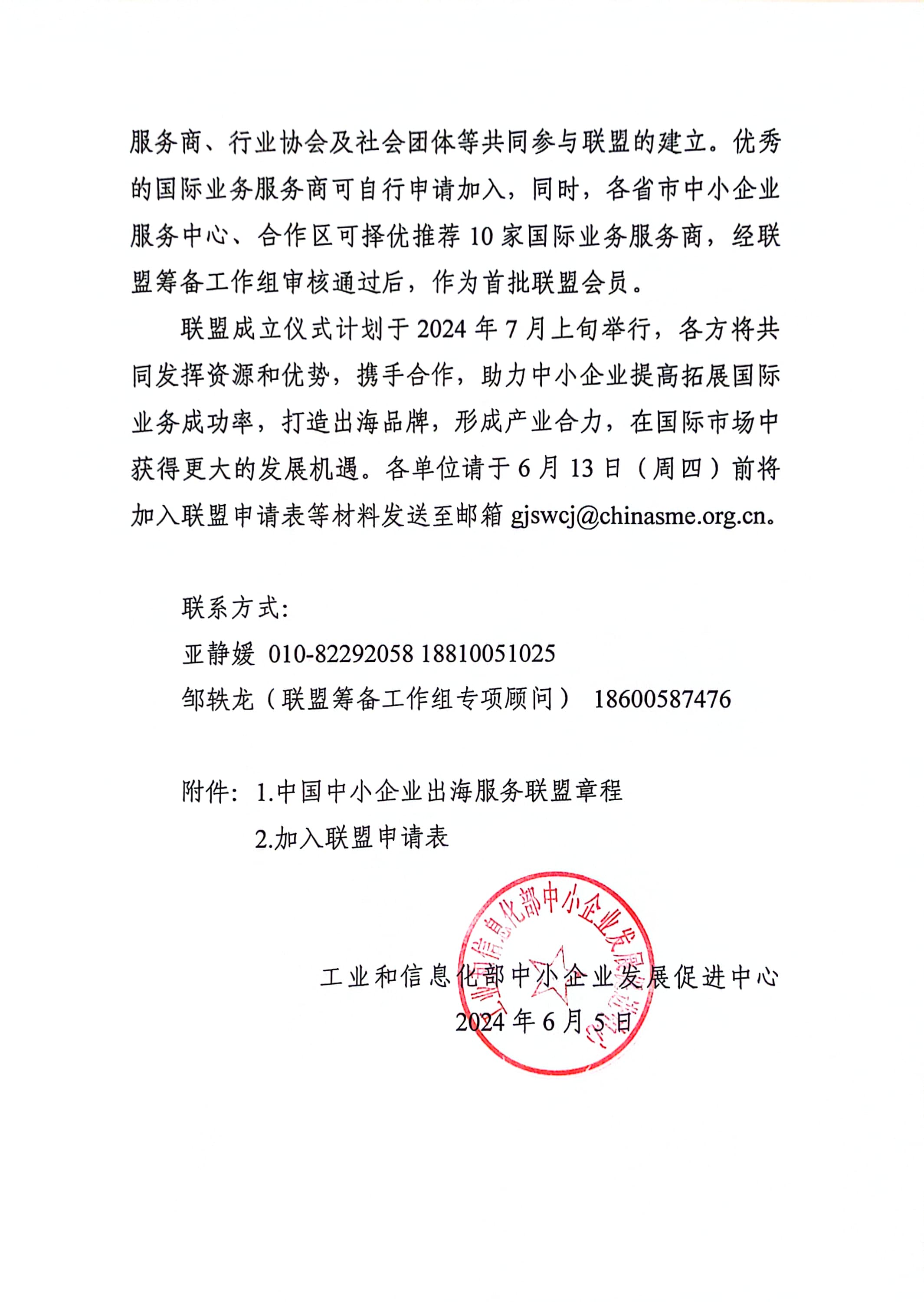關(guān)于邀請加入中國中小企業(yè)出海服務(wù)聯(lián)盟的函
